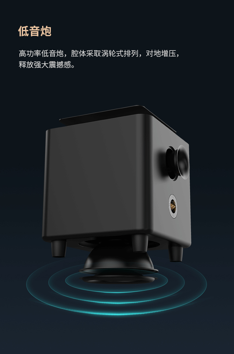 高功率低音炮腔体采用涡轮式排列,对地增压,释放强大震撼感;